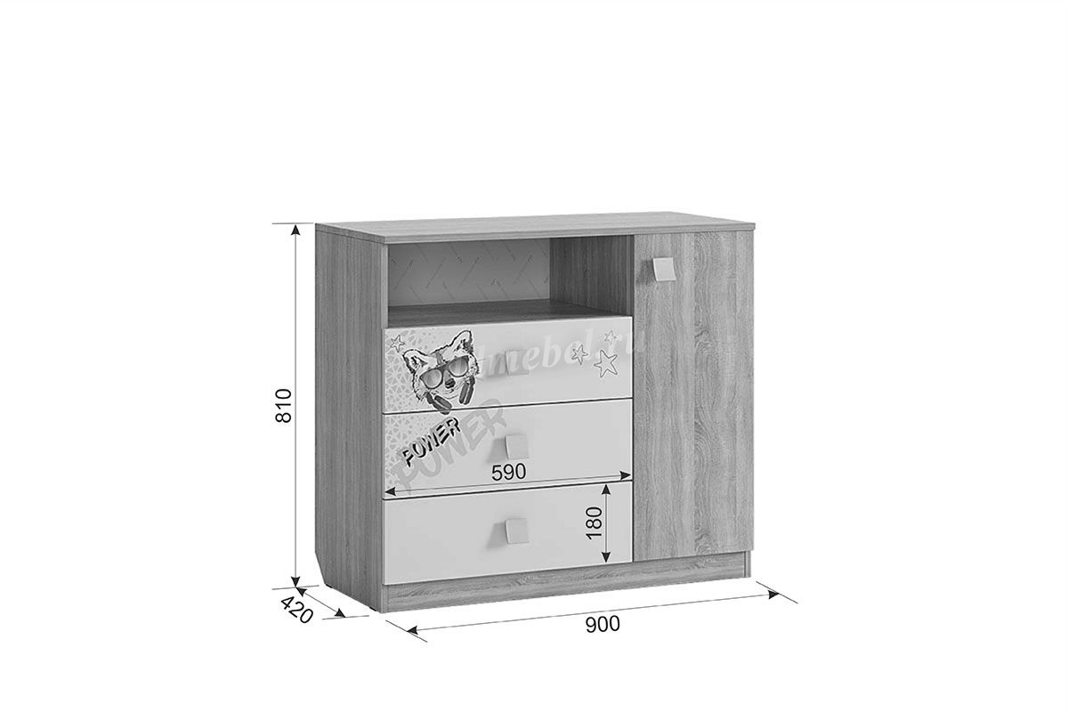 Стильный комод «Энерджи» – мечта каждого подростка. В 3-х выдвижных ящиках и 2-х удобных закрытых нишах за одним фасадом можно разместить все вещи подростка. Эффектный принтерный рисунок на фасадах выдержан в общем стилистическом решении. Рисунок устойчив к истиранию и ультрафиолету. Детская «Энерджи»- все, что нужно для подростка!