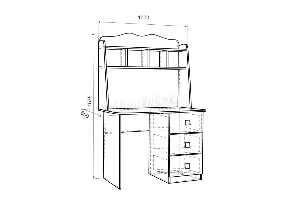 столешницы, 3-х выдвижных ящиков и полки для книг.