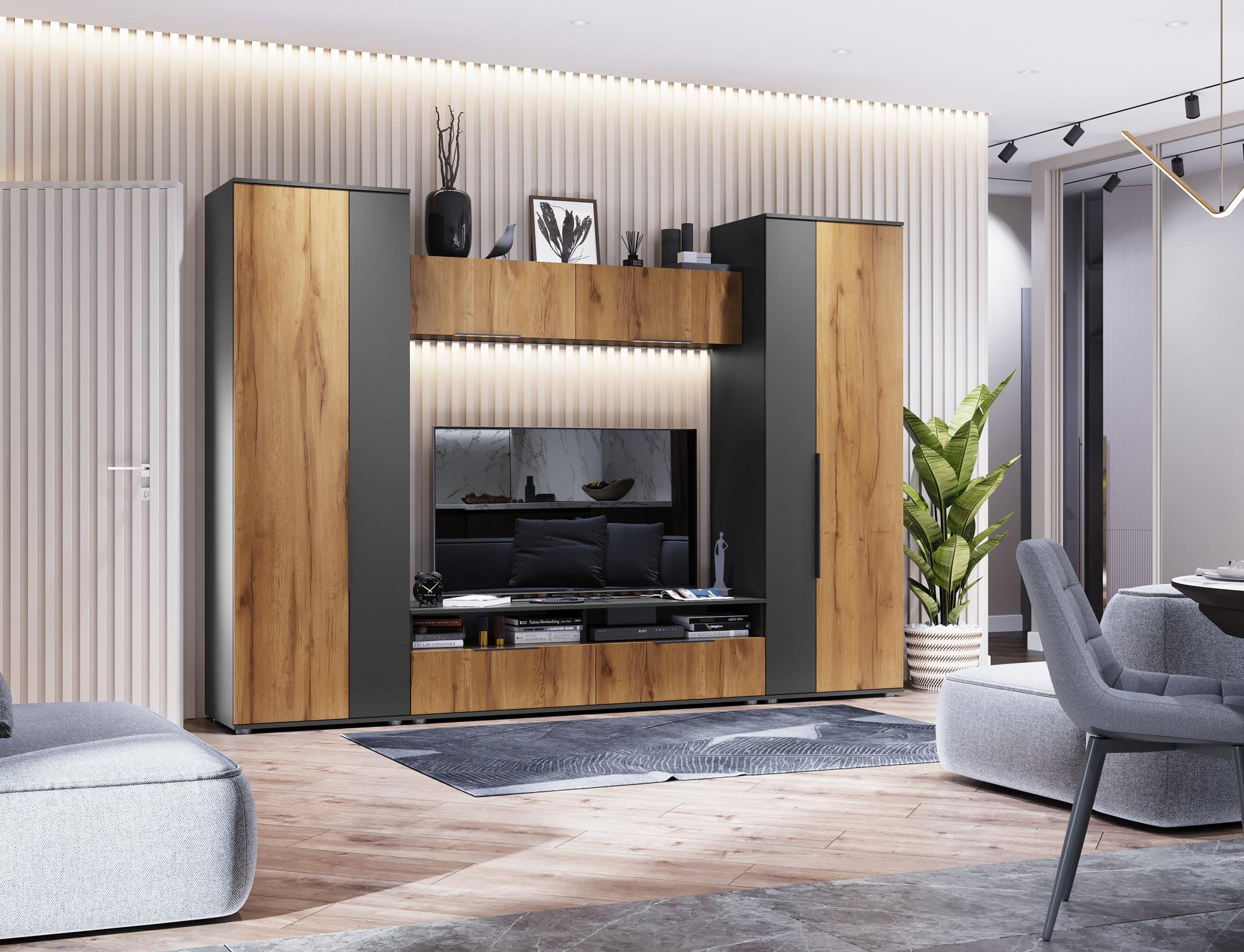 Модульная гостиная Моника Велес (Темно-серый/Дуб золотистый)