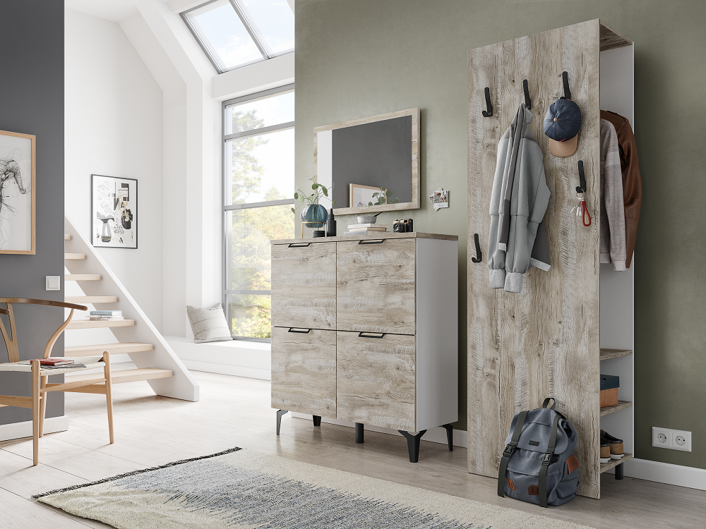 - Несмотря на минимальный набор модулей, все элементы коллекции практичны и функциональны. С их помощью можно обустроить как маленький холл, так и прихожую для большой семьи.