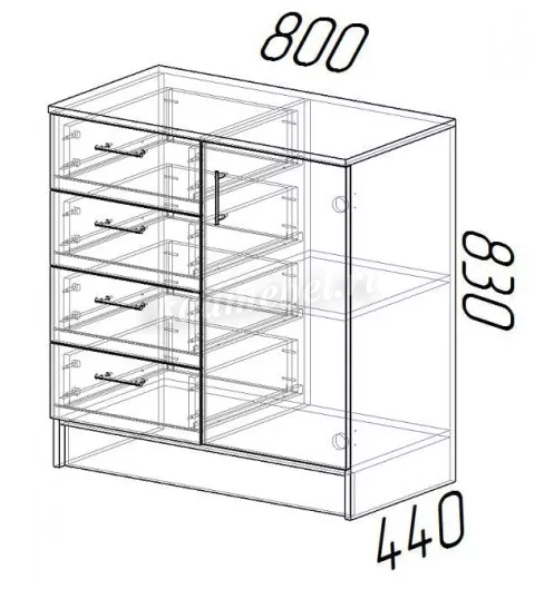 Комод «К800-1Д» — яркий пример того, что стандартные конструкции не всегда банальны и неинтересны. Простой, но привлекательный дизайн сочетается с компактностью, эргономичностью, функциональностью мебели, и делает комод «К 800-1Д» прекрасным выходом из положения при оформлении комнат различных размеров, планировок, назначений. А если ко всем вышеперечисленным достоинствам модели добавить еще и низкую стоимость, то любые сомнения в выборе отпадают сами собой…