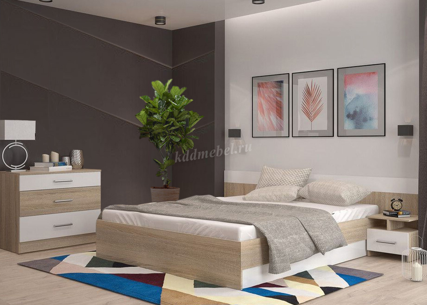Описание Спальня Уют (Дуб сонома/Белый)